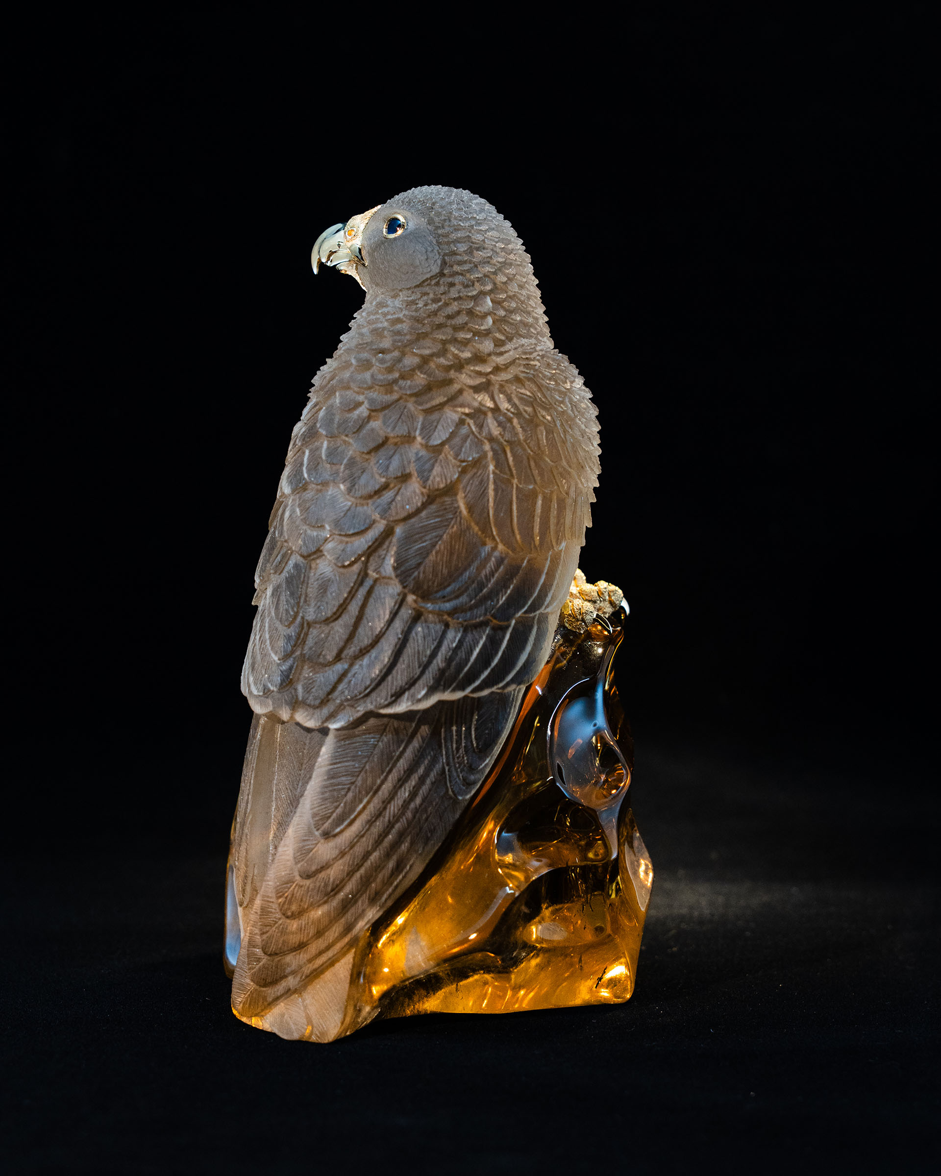 Falcon from One Crystal Citrine from Minas Gerais Brazil.with 750 /18 kt yellow gold.